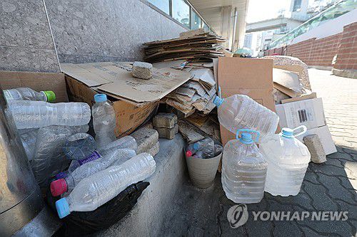 (서울=연합뉴스) 서대연 기자 = 서울 최저기온이 영하 12도까지 떨어지며 맹추위가 이어진 22일 서울역 인근 노숙인 생활공간 옆에 얼어붙은 물통들이 놓여있다. 2026.1.22