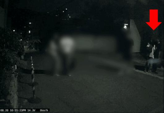 지난해 8월20일 서울 마포구 인근에서 촬영한 차량 블랙박스 영상 캡처. 화면 오른쪽 남성이 옆 여성의 머리 쪽을 당기는 듯한 장면이 포착됐다. ⓒ김준혁 기자 |