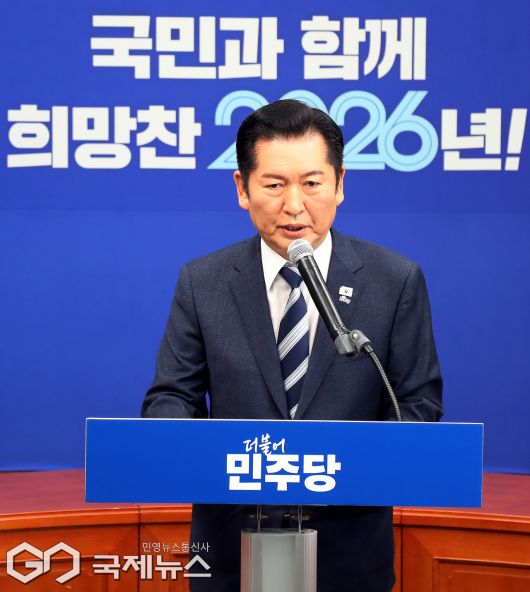 (서울=국제뉴스) 정청래 더불어민주당 대표가 22일 오전 서울 여의도 국회에서 긴급 기자회견을 열고 발언을 하고 있다./사진=이용우 기자
