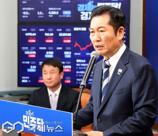 (서울=국제뉴스) 정청래 더불어민주당 대표가 22일 오전 서울 여의도 국회에서 긴급 기자회견을 열고 발언을 하고 있다./사진=이용우 기자
