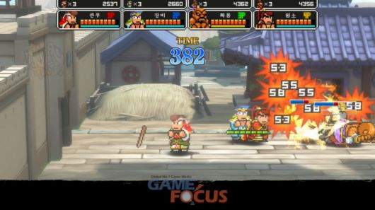 난세에 펼쳐지는 장대한 모험 스토리 모드에서는 ‘황건적의 난’이나 ‘적벽대전’ 등 삼국지의 장대한 스토리가 『열혈 시리즈』 특유의 장난기 넘치는 맛으로 어레인지되어 있으며, 최대 2명의 협력 플레이로 친구와 함께 적들을 물리쳐 한층 더 신나게 플레이할 수 있다.