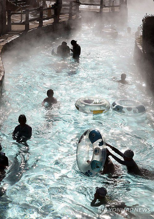 (용인=연합뉴스) 권준우 기자 = 한파가 이어지고 있는 22일 경기도 용인시 캐리비안베이를 찾은 시민들이 따뜻한 유수풀을 즐기고 있다. 2026.1.22