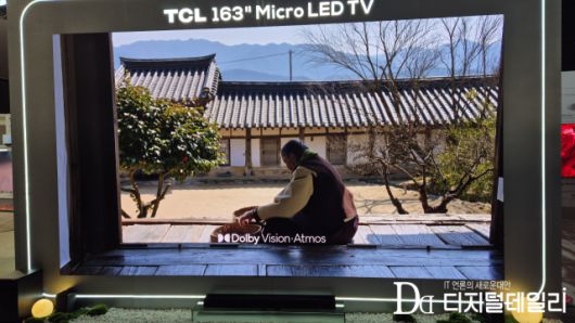 TCL이 전면에 내세운 163인치 마이크로 LED TV 화면 속에는 아궁이에 불을 지피는 노파, 산사의 풍경, 한옥 마루에 앉아 콩을 고르는 모습 등 한국 고유의 서정이 담긴 영상이 송출되고 있었다.