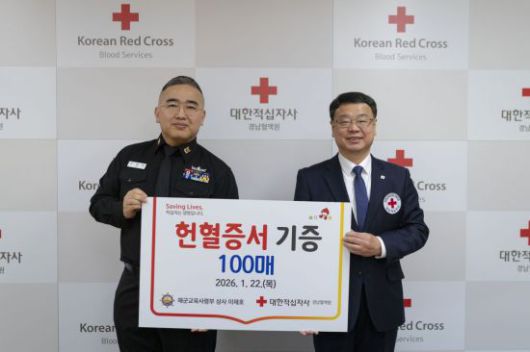 해군교육사령부(이하 '해군교육사') 근무지원전대 소속 이재호 상사가 지난 30년간 헌혈 229회를 실천하고 22일 경남혈액원에 헌혈증 100장을 기부해 훈훈한 감동을 주고 있다.