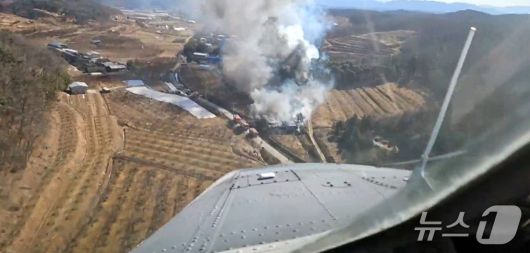 22일 낮 12시22분쯤 경북 영천시 청통면의 단독주택에서 난 불이 강한 바람을 타고 산으로 번져 산림·소방 당국이 헬기 8대 등을 투입, 진화에 나섰다(경북소방본부 제공.재판매 및 DB 금지)2026.1.22/뉴스1 |