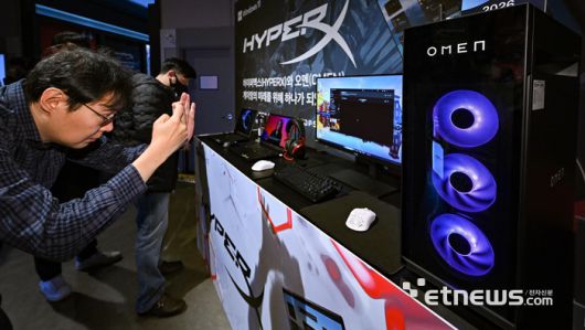HP 게이밍 신제품 소개 기자간담회가 22일 서울 강남구 SOOP 프릭업 스튜디오에서 열렸다. 참석자가 하이퍼X 오멘 게이밍 시리즈 신제품을 체험하고 있다. 이동근기자 foto@etnews.com [Copyright © 전자신문. 무단전재-재배포금지]