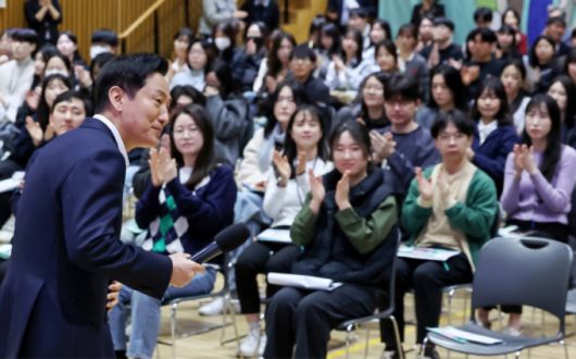 오세훈 서울시장이 지난해 3월 27일 오전 서울시 중구 서울시청에서 열린 '서울시 MZ공무원 영테크 특강'에 참석한 MZ세대 공무원들을 상대로 인사말을 하고 있다. 서울시는 지난 2021년 11월부터 '서울 영테크' 사업을 시작해 일반 청년들을 대상으로 일대일 재무 상담과 금융 교육을 지원하고 있다. /사진=뉴스1 |