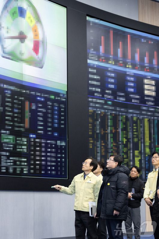 (서울=뉴스1) = 김성환 기후에너지환경부 장관이 22일 전남 나주시 소재 전력거래소를 방문해 동계 전력수급 상황을 점검하고 있다. (기후에너지환경부 제공. 재판매 및 DB 금지) 2026.1.22/뉴스1urodoct2@news1.krCopyright ⓒ 뉴스1. All rights reserved. 무단 전재 및 재배포, AI학습 이용 금지.