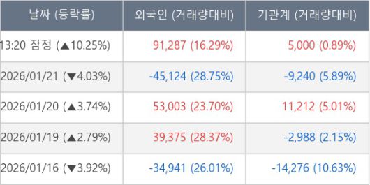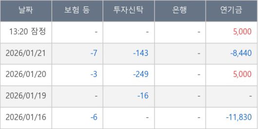 ※ 사모펀드 등 일부 기관의 순매매량은 표시되지 않음