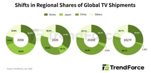 트렌드포스는 합작 회사가 운영을 시작하는 2027년에는 중국 TV 브랜드의 시장 점유율이 48.7%까지 늘어날 것으로 봤다. 삼성전자(005930), LG전자(066570) 등 한국 TV 브랜드 점유율은 29%로 점차 점유율이 줄어들 것으로 전망했다.