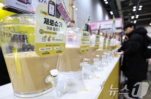 (고양=뉴스1) 김도우 기자 = 22일 경기 고양시 킨텍스에서 열린 2026 카페디저트페어에서 관람객들이 제로슈가 밀크티를 살펴보고 있다. 2026.1.22/뉴스1pizza@news1.krCopyright ⓒ 뉴스1. All rights reserved. 무단 전재 및 재배포, AI학습 이용 금지.