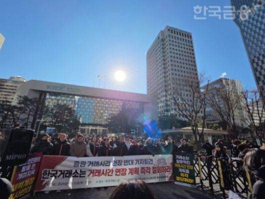 노조는 "거래시간 연장 계획은 한정된 유동성을 무리하게 새벽 시간으로 분산시켜 호가 공백을 초래하고, 시세 조정의 위험을 키우고 개인 투자자들을 변동성으로 내모는 일"이라고 말했다.