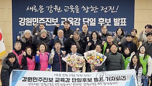 강원 민주 진보 교육감 단일화 추진위원회는 22일 춘천시 강원도농업인단체회관에서 교육감 후보 단일화 결과 발표 기자회견을 열고 강 대표를 단일 후보로 선출했다고 발표했다.