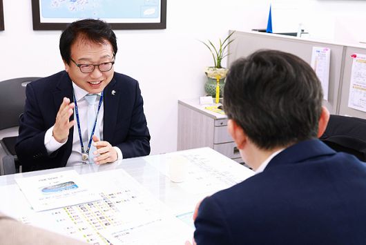 손병복 울진군수 가 국토교통부를 방문해 이우제 도로국장에게 남북10축 고속도로의 울진 구간의 필요성을 설명하고 있다. /울진군 |