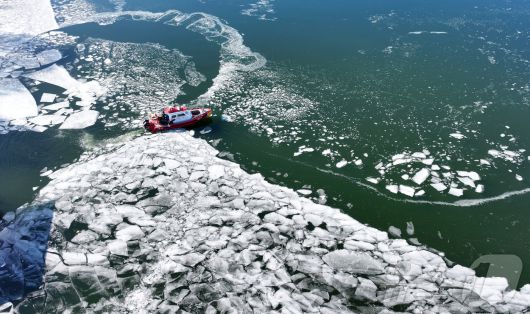 (서울=뉴스1) 김성진 기자 = 전국 대부분 지역 아침 기온이 영하 10도 안팎으로 떨어지며 한파가 이어진 22일 서울 한강 광나루한강공원 선착장 인근에서 119 광나루수난구조대가 순찰 근무를 하며 출동로 확보 작업을 하고 있다. 2026.1.22/뉴스1ssaji@news1.krCopyright ⓒ 뉴스1. All rights reserved. 무단 전재 및 재배포, AI학습 이용 금지.