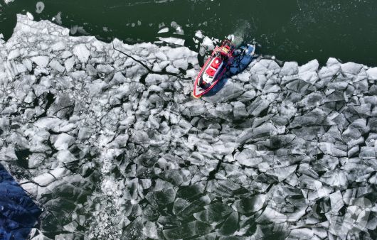 (서울=뉴스1) 김성진 기자 = 전국 대부분 지역 아침 기온이 영하 10도 안팎으로 떨어지며 한파가 이어진 22일 서울 한강 광나루한강공원 선착장 인근에서 119 광나루수난구조대가 순찰 근무를 하며 출동로 확보 작업을 하고 있다. 2026.1.22/뉴스1