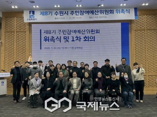 (수원=국제뉴스) 이운길·손병욱 기자 = 수원시 제8기 주민참여예산위원회는 22일 시청에서 위촉식과 제1차 회의를 열고 위원 29명을 위촉했다. 위촉된 제8기 주민참여예산위원회 위원은 2026년 1월 1일부터 2027년 12월 31일까지 2년간 활동한다. 임정완 시민협력교육국장이 위원들에게 위촉장을 수여했다.