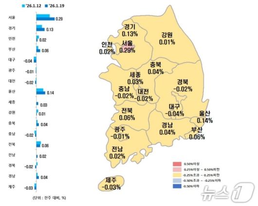 시·도별 1월 셋째주 아파트 매매가격지수 변동률(한국부동산원 제공, 재판매 및 DB 금지) |
