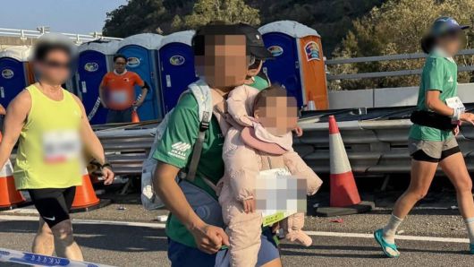 지난 18일 홍콩에서 열린 스탠다드차타드 홍콩 마라톤에서 한 남성이 아기띠에 갓난아기를 메고 참가했다. 그가 달리는 모습이 담긴 영상이 소셜미디어(SNS)에서 빠르게 확산됐다. 영상에는 남성이 아기와 함께 달리는 모습과, 다른 참가자들이 놀란 듯 뒤를 돌아보는 장면 등이 포함됐다.