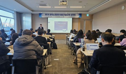 [이데일리 김기덕 기자] 한국화학산업협회는 22일 서울시 영등포구 여의도동 FKI 타워(舊 전경련회관)에서 ‘제1차 화학소재 분야 해외기술규제 설명회’를 개최했다고 밝혔다. 이날 현장에는 GS칼텍스, LG화학, 대한유화, 롯데케미칼 등 30여 개 화학기업의 실무자 50여 명이 참석했다.