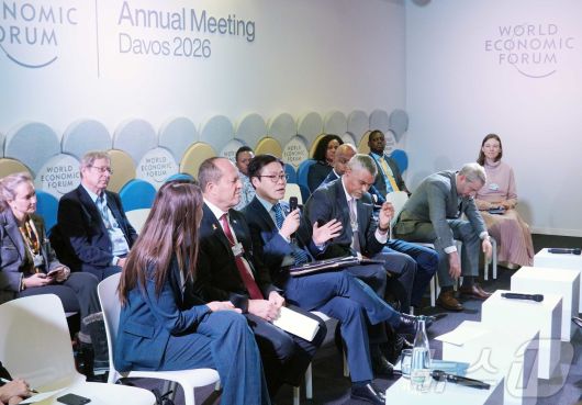 (서울=뉴스1) = 여한구 산업통상부 통상교섭본부장이 21일(현지시간) 스위스 다보스에서 열린 '다보스 포럼 Next-Generation Trade Facilitation’에서 패널 발언을 하고 있다. (산업통상부 제공. 재판매 및 DB 금지) 2026.1.22/뉴스1