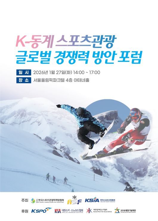 [헤럴드경제=조용직 기자] 대한민국 동계 스포츠관광의 미래전략을 논의하는 ‘K-동계 스포츠관광 글로벌 경쟁력 방안 포럼’이 오는 27일 서울 올림픽파크텔 4층 아테네홀에서 열린다.