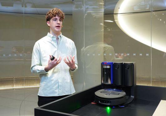[서울=뉴시스]22일 다이슨 더 넥스트 홈 랩(The Next Home Lab) 팝업에서 진행된 미디어 행사에서 다이슨 홈 RDD(Research, Design and Development) 소프트웨어 팀 시니어 디자인 매니저 네이슨 로슨 맥클린(Nathan Lawson McLean)이 다이슨 스팟앤스크럽 Ai 로봇 청소기 제품 시연을 선보이고 있다. 신제품은 롤러형 걸레를 사용한다. photo@newsis.com *재판매 및 DB 금지 |