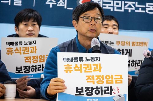 이어 "클렌징 제도와 과도한 배송 마감 압박은 사실상의 해고"라며 "분류작업 직접 수행, 유급휴가 보장, 최저수수료 도입과 원청 단가 공개가 시급하다"고 말했다.
