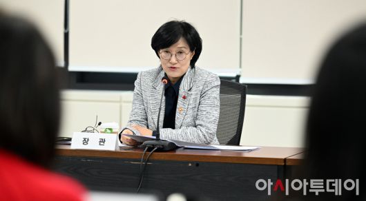 아시아투데이 박성일 기자 = 원민경 성평등가족부 장관이 22일 오후 서울 종로구 정부서울청사에서 열린 온라인상 청소년 안전을 위한 전문가 간담회에 참석해 발언을 하고 있다.