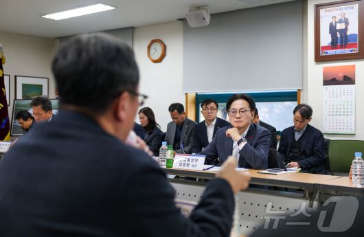 (서울=뉴스1) = 김정관 산업통상부 장관이 22일 오전 전북 완주문화산단 정석케미칼 회의실에서 열린 '완주 문화산단 입주기업 간담회'에서 참석자의 발언을 경청하고 있다. (산업통상부 제공. 재판매 및 DB 금지) 2026.1.22/뉴스1urodoct2@news1.krCopyright ⓒ 뉴스1. All rights reserved. 무단 전재 및 재배포, AI학습 이용 금지.