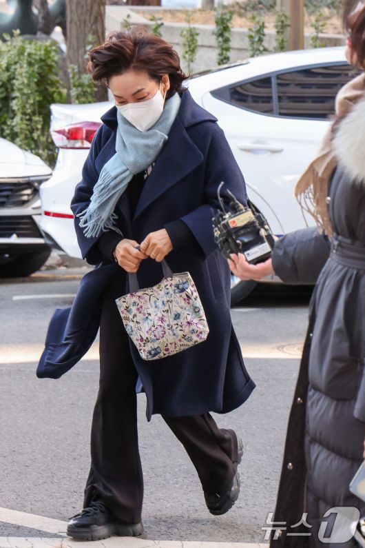 (서울=뉴스1) 안은나 기자 = 김병기 무소속 의원의 배우자 이예다 씨가 22일 오후 마포구 서울경찰청 공공범죄수사대에서 법인카드 유용 의혹과 관련 피의자 신분으로 조사를 받기 위해 출석하고 있다. 2026.1.22/뉴스1