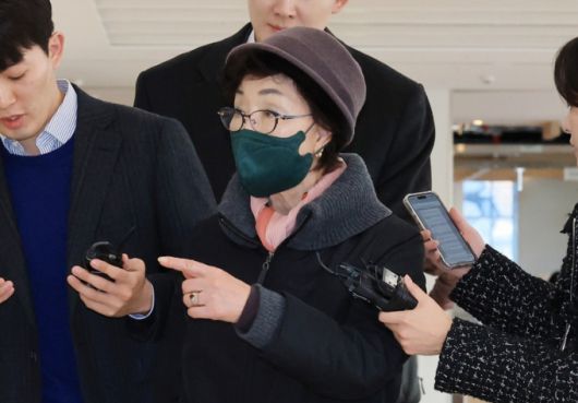 윤석열 전 대통령의 부인 김건희 여사의 모친 최은순씨가 지난해 11월 11일 오전 서울 종로구 KT광화문빌딩 웨스트에 마련된 김건희특검 사무실에 피의자 신분으로 출석하고 있다. /사진=뉴스1 |