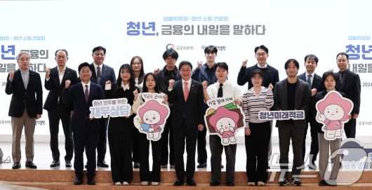 (서울=뉴스1) 최지환 기자 = 이억원 금융위원장(앞줄 왼쪽부터 네번째)이 22일 서울 중구 온드림 소사이어티에서 열린 청년 소통 간담회 '청년, 금융의 내일을 말하다'에서 참석자들과 기념촬영을 하고 있다. 2026.1.22/뉴스1choipix@news1.krCopyright ⓒ 뉴스1. All rights reserved. 무단 전재 및 재배포, AI학습 이용 금지.