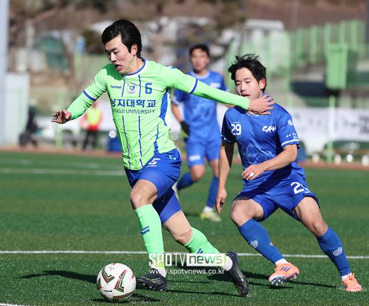 [스포티비뉴스=김천, 곽혜미 기자] 제22회 1,2학년 대학축구대회 중앙대와 상지대의 결승전이 22일 오후 경상북도 김천대학교 대운동장에서 열렸다. 상지대 정성훈이 드리블을 하고 있다. <저작권자 ⓒ SPOTV NEWS. 무단전재 및 재배포 금지>