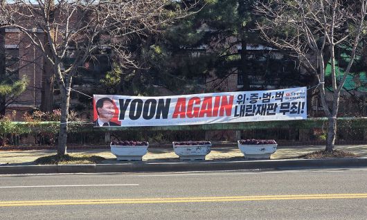 울산 동구는 최근 내일로미래로당이 지역 곳곳에 게시한 ‘Yoon Again)’ 현수막이 옥외광고물법을 위반했다며 23일까지 자진 철거하라는 내용의 공문을 발송했다고 22일 밝혔다.