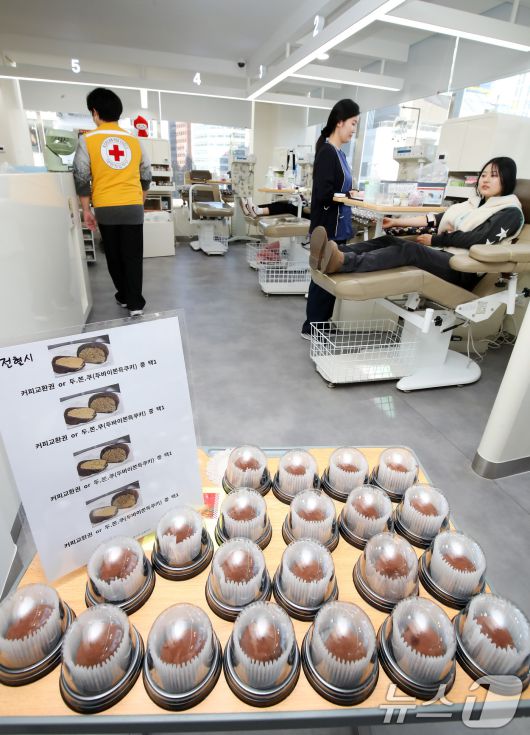 (대구=뉴스1) 공정식 기자 = 22일 오전 대구 중구 헌혈의집 동성로센터를 찾은 시민들이 헌혈에 동참하고 있다. 대한적십자사 대구경북혈액원은 겨울철 혈액 보유량을 안정적으로 유지하기 위해 이날 하루 전혈 헌혈자를 대상으로 '두쫀쿠' 증정 이벤트를 열었다. 최근 젊은 세대를 중심으로 인기를 얻고 있는 '두쫀쿠'는 '두바이 쫀득 쿠키'의 줄임말로, 카다이프와 피스타치오 스프레드를 마시멜로 피로 감싼 디저트를 뜻한다. 2026.1.22/뉴스1
