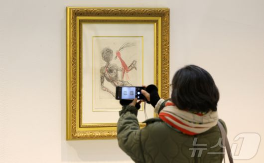 (서울=뉴스1) 김진환 기자 = 22일 오후 서울 강남구 코엑스에서 열린 '월드아트페스타 2026'을 찾은 관람객이 초현실주의 거장 살바도르 달리의 작품을 스마트폰으로 촬영하고 있다. “예술은, 축제다”를 기치로 열리는 이번 전시회는 오는 25일까지 열린다. 2026.1.22 2026.1.22/뉴스1