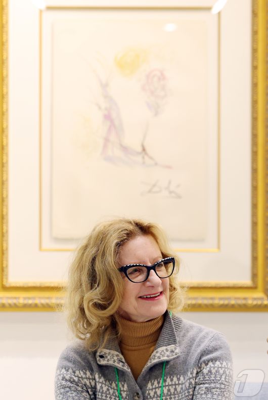 (서울=뉴스1) 김진환 기자 = 22일 오후 서울 강남구 코엑스에서 열린 '월드아트페스타 2026 : 살바도르 달리 아르질레 컬렉션'을 찾은 크리스틴 아르질레가 한 메체와 인터뷰를 하고 있다. 크리스틴 아르질레는 프랑스 컬렉터이자 살바도르 달리의 친구였던 피에르 아르질레의 딸로 이번 컬렉션을 기획했다. 2026.1.22 2026.1.22/뉴스1