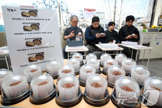 (대구=뉴스1) 공정식 기자 = 22일 오전 대구 중구 헌혈의집 동성로센터에서 헌혈에 참여해 '두쫀쿠'를 받은 시민들이 즐거워하고 있다. 대한적십자사 대구경북혈액원은 겨울철 혈액 보유량을 안정적으로 유지하기 위해 이날 하루 전혈 헌혈자를 대상으로 '두쫀쿠' 증정 이벤트를 열었다. 최근 젊은 세대를 중심으로 인기를 얻고 있는 '두쫀쿠'는 '두바이 쫀득 쿠키'의 줄임말로, 카다이프와 피스타치오 스프레드를 마시멜로 피로 감싼 디저트를 뜻한다. 2026.1.22/뉴스1