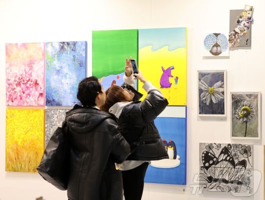 (서울=뉴스1) 김진환 기자 = 22일 오후 서울 강남구 코엑스에서 열린 '월드아트페스타 2026'을 찾은 관람객들이 전시 작품을 둘러보고 있다. “예술은, 축제다”를 기치로 열리는 이번 전시회는 오는 25일까지 열린다. 2026.1.22 2026.1.22/뉴스1