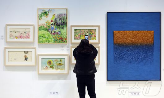 (서울=뉴스1) 김진환 기자 = 22일 오후 서울 강남구 코엑스에서 열린 '월드아트페스타 2026'을 찾은 관람객들이 전시 작품을 둘러보고 있다. “예술은, 축제다”를 기치로 열리는 이번 전시회는 오는 25일까지 열린다. 2026.1.22 2026.1.22/뉴스1