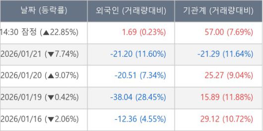 ※ 사모펀드 등 일부 기관의 순매매량은 표시되지 않음