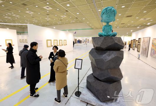 (서울=뉴스1) 김진환 기자 = 22일 오후 서울 강남구 코엑스에서 열린 '월드아트페스타 2026'을 찾은 관람객들이 전시 작품을 둘러보고 있다. “예술은, 축제다”를 기치로 열리는 이번 전시회는 오는 25일까지 열린다. 2026.1.22 2026.1.22/뉴스1