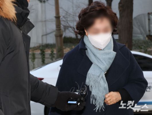법인카드 사적유용·불법 정치자금 수수 등 무소속 김병기 의원을 둘러싼 각종 비위에 직접 가담한 혐의를 받는 김 의원의 배우자 이 모씨가 22일 조사를 받기 위해 서울 마포구 서울경찰청 공공범죄수사대로 출석하고 있다. 황진환 기자 |