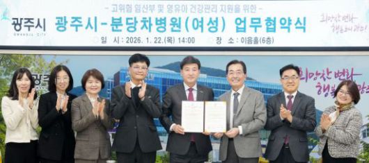 광주시는 22일 시청 이음홀에서 분당차병원(여성)과 '고위험 임산부 및 영유아 건강 증진과 공공보건의료 협력 강화를 위한 업무협약'을 체결했다고 밝혔다.
