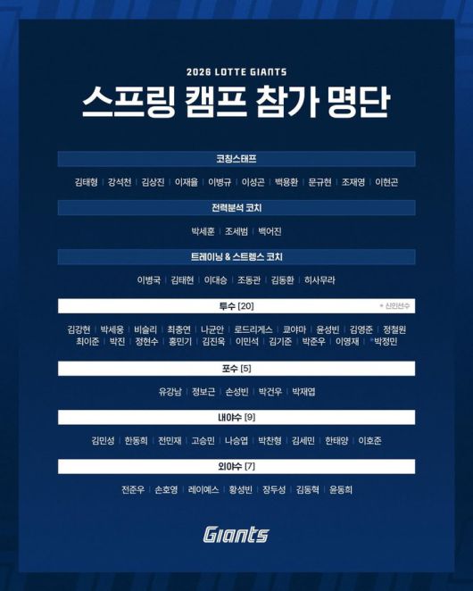 한편, 롯데 자이언츠의 주전 마무리 투수 김원중은 현재 골절상 회복 중에 있어 캠프 스타트 명단에는 등록되지 않았다.