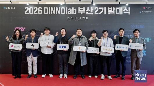 지난 2026년 1월 21일 디노랩 부산센터에서 우리금융지주 노영찬 부장(우측 두번째), 지자체 관계자, 디노랩 부산2기에 선발된 스타트업 대표들이 기념사진을 촬영하고 있다. ⓒ우리금융 |