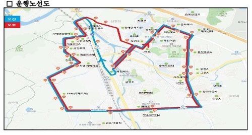 (옥천=연합뉴스) 박병기 기자 = 충북 옥천군은 내달부터 옥천읍 시가지의 아파트단지와 학교, 관공서, 체육시설 등을 연결하는 순환버스를 운행한다고 22일 밝혔다.