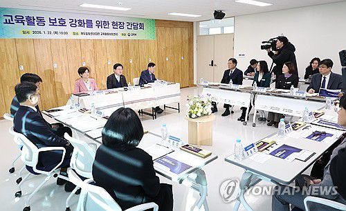 (세종=연합뉴스) 최교진 교육부 장관이 22일 대전 에듀힐링센터에서 강은희 교육감협의회장(대구시교육감), 설동호 대전교육감, 교사, 학부모들과 '교육활동 보호 강화 방안''을 주제로 현장간담회를 하고 있다. 2026.1.22 [교육부 제공. 재판매 및 DB 금지]