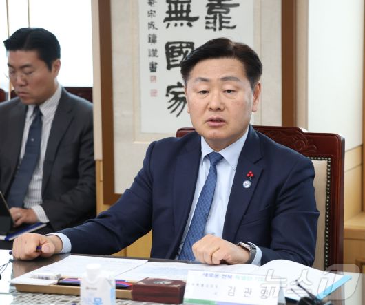 (전주=뉴스1) 유경석 기자 = 감관영 전북도지사가 22일 전북 전주시 전북특별자치도청에서 열린 5극3특 성장엔진 현장 간담회에서 인사말을 하고 있다. 2026.1.22/뉴스1Yks919@news1.krCopyright ⓒ 뉴스1. All rights reserved. 무단 전재 및 재배포, AI학습 이용 금지.